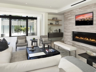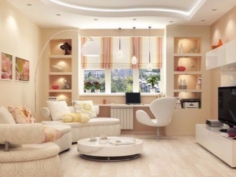 تتميز الأساليب الحديثة باستخدام الألوان أحادية اللون والإضاءة النشطة والأثاث الزاهد المقتضب. بدلاً من الأرائك الضخمة أو الكراسي بذراعين مع مساند للذراعين ، يمكنك استخدام الوسائد أو تحويل الكراسي. نفس المبادئ تعمل و الكلاسيكية الجديدة وذات التكنولوجيا العالية.