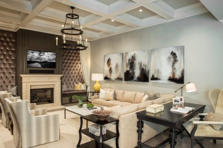 يعتمد الكثير أيضًا على اختيار الأثاث. من المهم وضع موضع جلوس في غرفة المعيشة. يمكن أن تكون أريكة أو عدة كراسي بذراعين أو عثمانيين. كل هذا يتوقف على عدد الأشخاص الذين تم تصميم منزلك من أجلهم وعدد المرات التي تستضيف فيها الضيوف. أ إذا كان لديك عائلة كبيرة ، ولكن مساحة صغيرة ، فيمكنك دائمًا استكمال الغرفة بكراسي قابلة للطي أو كراسي بين باج. إذا لزم الأمر ، يمكن إزالتها أو طيها في خزانة أو نقلها إلى غرفة أخرى..