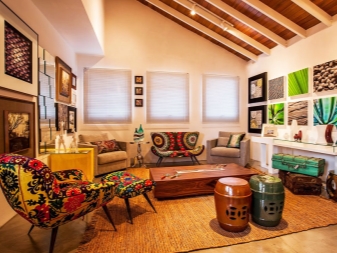 غرفة المعيشة بهذا النمط هي أيضًا مثيرة للاهتمام للغاية ويحبها جميع أفراد الأسرة. في هذه الغرفة ، يمكنك جمع أجزاء متباينة ودمجها مع بعضها البعض بطريقة تناسبك. في غرفة واحدة ، يمكنك الجمع بين التفاصيل النموذجية لمختلف البلدان. على سبيل المثال ، طاولات يابانية منخفضة ، مطلية بأحرف صينية وأرائك ومزهريات على الطراز المصري. تعد غرفة المعيشة هذه مكانًا مثاليًا لأولئك الذين يسافرون باستمرار ويحضرون معهم عددًا كبيرًا من الهدايا التذكارية من مختلف البلدان..