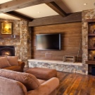 يمكن تزيين جدران غرفة المعيشة في منزل خاص ليس فقط بورق الجدران ، ولكن أيضًا بأغطية من القماش أو الألواح الخشبية. أغطية الجدران منمقة كمواد طبيعية – الطوب أو البناء ، على سبيل المثال ، مناسبة أيضًا. إذا كنت تخطط لتجهيز غرفة المعيشة في سجل أو منزل خشبي ، فيمكن ترك الجدران غير معالجة. يتيح لك مظهر ورائحة جذوع الأشجار الطبيعية الجميلة خلق الجو المناسب. لذلك يمكن تزيين الجدران بلوحات صغيرة أو ملصقات بدلاً من إخفاء هذا الجمال الطبيعي تحت طبقة من ورق الحائط..