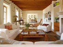 ولكن حتى لو كان لديك غرفة جلوس واسعة إلى حد ما في منزلك ، فلا يجب أن تملأ كل متر مجاني بالأشياء والديكور. فكر في تصميم الغرفة ، مع مراعاة كل من ميزات الغرفة والفروق الدقيقة في الحياة في منزل ريفي في كوخ صيفي أو في القرية.