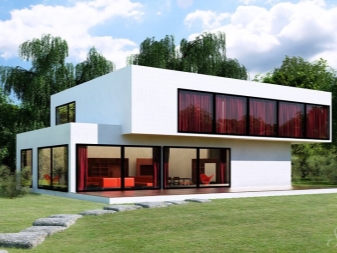 عادة ما يتم استخدام لون أو لونين للتلوين. غالبًا ما توجد مثل هذه المباني على ساحل البحر ، حيث يمكنك مشاهدة منظر جميل من خلال النوافذ البانورامية الضخمة..