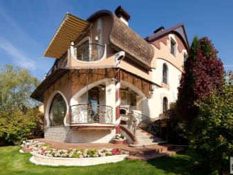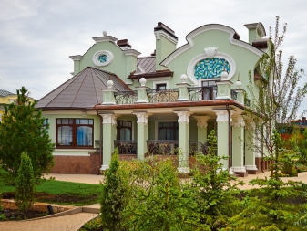 تحمل واجهة المنزل ، المصنوعة على طراز فن الآرت نوفو ، روعة معينة. النوافذ والمداخل والسور ضمن هذا النمط لها خطوط عريضة سلسة. على سبيل المثال ، غالبًا ما تحتوي هذه المنازل على نوافذ بيضاوية أو دائرية غير عادية ، كما هو الحال في القلاع. عادةً ما يتم إجراء جميع تفاصيل الهيكل في هذا الإصدار بشكل متماثل..
