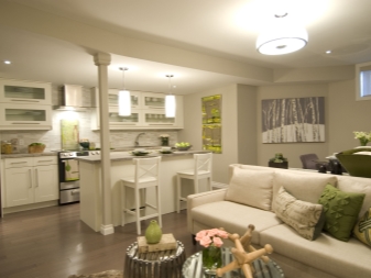 مهما كان المظهر الجميل للمنزل ، ولكن بداخله عليك أن تهتم بالراحة. كما اكتشفنا بالفعل ، لا توجد مساحة كافية هنا ويجب استخدامها بحكمة. لذلك ، إذا كان التصميم يوفر مطبخًا وغرفة معيشة مدمجة ، فيمكنك استخدام عداد شريط لفصل هاتين المنطقتين. بالإضافة إلى تقسيم المساحة ، ستشتري مساحة إضافية للوجبات الخفيفة ، أو يمكنك استخدامها كمنطقة لتناول الطعام. بهذه الطريقة توفر المساحة وفي نفس الوقت تحصل على تصميم عصري وأنيق..