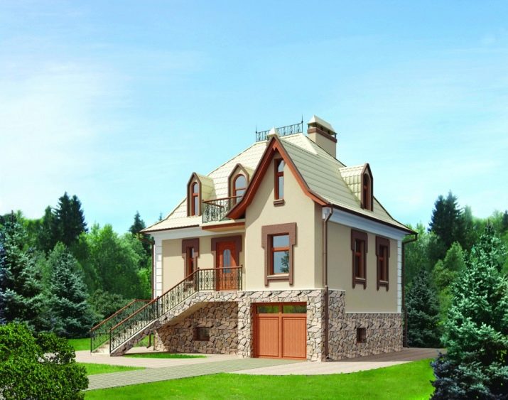 يمكن إرفاق مرآب صغير بالمنزل الريفي المصمم على طراز القلعة ، حيث توجد مساحة لنقلك وللأشياء التي لا تستخدمها مؤقتًا.