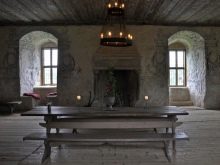 لجعل القلعة لا تبدو كمبنى قديم مهجور ، ولكن كمنزل مأهول ومحبوب ، يجب استكمالها بتفاهات زخرفية تعكس تفضيلاتك وهواياتك. البطانيات الصوفية الناعمة وسجاد الفراء على الأرض والوسائد الرشيقة ومنتجات النسيج الأخرى ستجعل الغرفة مريحة..