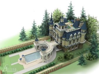 على عكس المنازل ذات الإطار الرتيب والمنازل الريفية المكونة من طابق واحد ، فإن المباني المصممة على طراز القلعة تبدو مذهلة ، بل وضخمة بالفعل. سيتم ملاحظة هذا المنزل على الفور على خلفية الجيران ولن يظل محل تقدير..