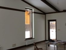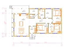 - بناء كبير من 151 مربعا, خشبي ، مع علية ، مبني باستخدام تقنية القضيب المزدوج. الواجهة غير مكتملة والسقف مغطى بالبلاط المعدني. يوفر المشروع شرفة أرضية مجاورة لغرفة المرجل. تتميز غرفة المعيشة بشكل مائل قليلاً ويتم دمجها مع المطبخ وغرفة الطعام. هناك غرفتا نوم ، أمام الشرفة يوجد ردهة واسعة إلى حد ما حيث يمكنك تخزين الدراجات والدراجات البخارية والزلاجات وغير ذلك الكثير. أو حتى استخدامه جزئيًا كمخزن.