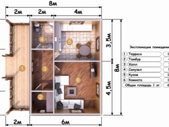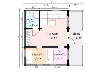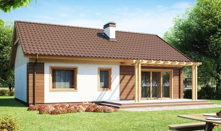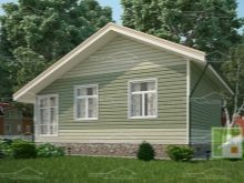 منزل 90 متر مربع, خشبي ، بدون علية ، مع سقف مصنوع من المعدن والبلاط المركب. إنه ذو شرفة جذابة مع نوافذ تفتح من غرفة معيشة واسعة. تم دمج غرفة المعيشة في هذا المبنى المكون من طابق واحد بشكل ملائم مع المطبخ ؛ ومنه يوجد مخرج إلى رواق متواضع وغرفة نوم. الوصول إلى غرفة النوم الثانية من الرواق وكذلك إلى الحمام.