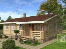 - منزل نمساوي بمساحة 64 متر مربع, خشبية مع علية. تكنولوجيا البناء – الحزم الملصقة ، الحزم الجانبية. يوفر المشروع تراس بمساحة 16 متر ، دهليز صغير ، صالة ، حمام ، مطبخ وغرفة.