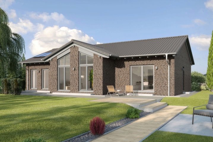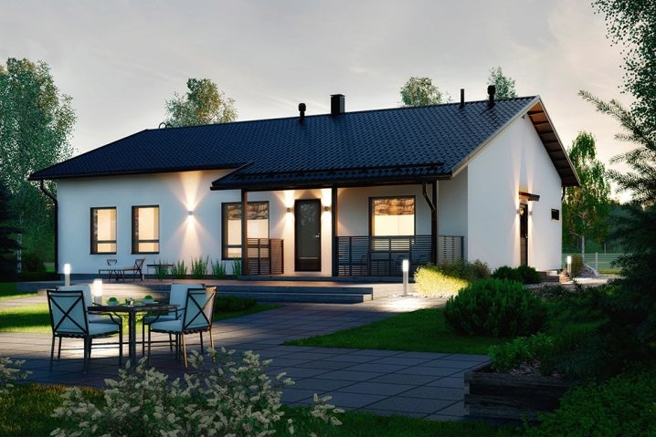 والآن يمكنك أن ترى بوضوح كيف يبدو مشروع المنزل في طابق واحد بسقف الجملون ، وفهم ما هو موجود ، وما هو “ملئه” ، وتقييم الإيجابيات والسلبيات بصريًا.