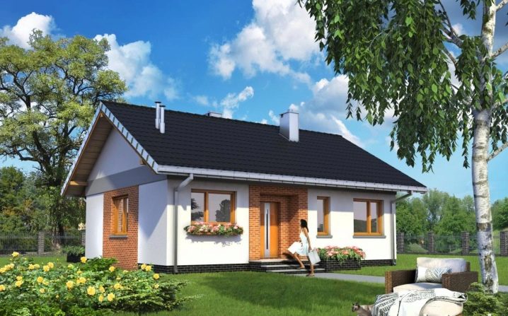 - يحول السقف الضخم الانتباه قليلاً عن الحجم المتواضع للمنزل. إدخالات الطوب ناجحة ، وبدونها لن يبدو المنزل مشرقًا ومريحًا.