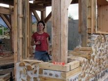 عند تشكيل الجدار ، من المهم ألا تنسى ترك مساحة لفتحات النوافذ والأبواب ، والتي يجب التفكير فيها حتى في مرحلة التخطيط للهيكل.. من المهم بنفس القدر السيطرة, بحيث تمتد حواف الفراغات الخشبية من 1-2 سم إلى ما وراء حواف الصلصال. يتم تغطية البناء النهائي مؤقتًا بالقماش المشمع أو البولي إيثيلين بحيث يكون هناك إمكانية للتهوية. سوف يجف الهيكل لمدة 6 أشهر ، لذلك يوصى ببدء أعمال البناء في نهاية الربيع.
