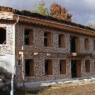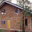- منزل آخر مصنوع من الطين وجذوع الأشجار له هيكل أكثر تعقيدًا.. أولاً ، يحتوي على طابقين كاملين. ثانيًا ، بفضل استخدام عوارض إضافية ، يحتوي المبنى على شرفة مفتوحة في الطابق العلوي. ثالثًا ، المنزل الريفي له شكل دائري غير عادي. تم ترك واجهات المنزل دون تغيير عمليًا: تم استخدام التبييض فقط للطين وبقع الخشب لتزيينها. السقف مغطى بالبلاط الفاتح بلون أخضر لطيف. يوفر عدد كبير من النوافذ المربعة الإضاءة اللازمة للداخل. نظرًا لموقع المنزل المناسب ، يمكنك الوصول إلى الطابق الثاني مباشرة من الشارع عن طريق السلالم..