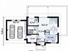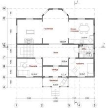 نسخة بديلة من منزل بولندي مكون من طابقين تبدأ من رواق يبلغ ارتفاعه 5 أمتار. تبلغ مساحة المطبخ ومنطقة تناول الطعام 25 مترًا مربعًا تقريبًا. م حجم غرفة المعيشة 27 مترا مربعا. م ولكن أولاً ، يدخل كل من يدخل الدهليز المتواضع. وكذلك يوجد في الطابق الأرضي خزانة ملابس وغرفة مرجل وقاعة مدخل وحمام..