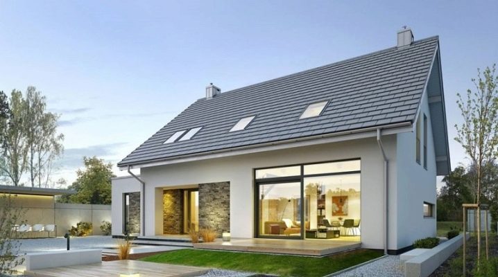 يمكن أن تكون شديدة التنوع. أحد الخيارات يعني الوصول إلى مساحة 180 مترًا مربعًا. م هذا المنزل المكون من طابقين مبني من الخرسانة الخلوية ولا يحتوي على مرآب. بفضل 3 حمامات ، سيكون المسكن مريحًا حتى لعائلة كبيرة. في غرفة المعيشة بمساحة 45 مترًا مربعًا. م يمكن بسهولة جمع جميع أفراد الأسرة.