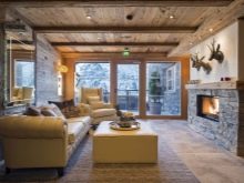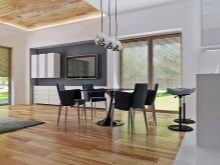 إلى جانب القاعدة ، يمكن أيضًا استخدام لون إضافي. يجب أن يتناسب مع لون السقف. داخل المنزل ، تلعب غرفة المعيشة الدور الرئيسي ، والتي يجب أن تكون كبيرة. حجم كبير متاح أيضا للمطابخ.