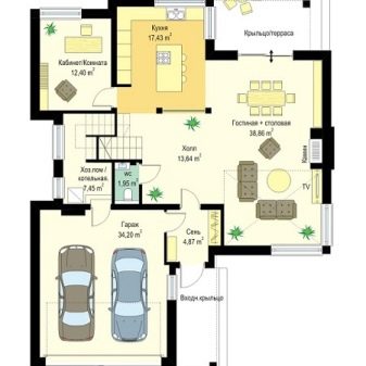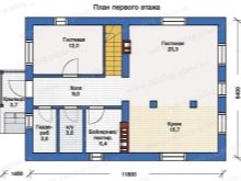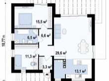 نسخة أخرى من منزل من طابقين في النسخة البولندية تبدأ من شرفة طولها 3 أمتار ، حيث يدخل الناس إلى قاعة طولها 9 أمتار.. تبلغ مساحة غرفة الضيوف الواقعة في الطابق الأرضي 12 مترًا مربعًا. م تمت إزالة الفواصل بين غرفة المعيشة والمطبخ ، لتشكيل مساحة غير قابلة للتجزئة. وأيضا أدناه يجهزون: