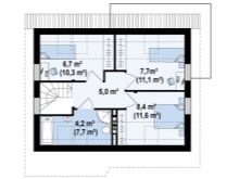 سيتم تجهيز ما يصل إلى 3 غرف نوم في العلية. كان هناك أيضا مكان للحمام. خزانة الملابس صغيرة – لكن حقيقة أن فريق المهندسين المعماريين لم ينسها يعد إضافة واضحة. يمكن تجهيز الطابق الأرضي بغرفة معيشة مساعدة (ولكن يمكن أيضًا تخصيصها للضيوف). الحل البديل هو تجهيز مكتب هناك أو غرفة ألعاب للأطفال.