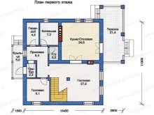 نسخة بديلة من منزل بولندي مكون من طابقين تبدأ من رواق يبلغ ارتفاعه 5 أمتار. تبلغ مساحة المطبخ ومنطقة تناول الطعام 25 مترًا مربعًا تقريبًا. م حجم غرفة المعيشة 27 مترا مربعا. م ولكن أولاً ، يدخل كل من يدخل الدهليز المتواضع. وكذلك يوجد في الطابق الأرضي خزانة ملابس وغرفة مرجل وقاعة مدخل وحمام..
