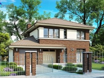 ليس من المناسب جدًا تجهيز مرآب مدمج أو تحت الأرض – وهذا لا يتوافق مع شرائع الأسلوب. لكن العدد الكبير من النوافذ التي تضمن الإضاءة الملائمة والراحة مرحب به تمامًا. عادة ما تكون الجدران مزينة باللون الرمادي أو البني أو الأبيض أو البيج..
