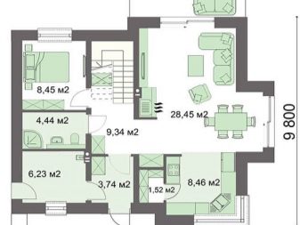 - يحتوي هذا المنزل على 94 مترًا مربعًا للمعيشة و 3 غرف نوم و 2 حمام. يتناسب تمامًا مع مساحة لا يقل طولها عن 18 مترًا ولا يقل عرضها عن 22.50 مترًا ، وهو قصر على الطراز الأوروبي بهندسة بسيطة وخطوط مستقيمة وسقف الجملون وأبواب ونوافذ كبيرة وشرفات. يحتوي المنزل على شرفة واسعة مفتوحة مذهلة حيث يمكنك قضاء الصيف بأكمله – تنظيم وجبات الغداء والعشاء هنا ، أخذ حمام شمسي ، والدردشة ، وترتيب التجمعات مع الضيوف.