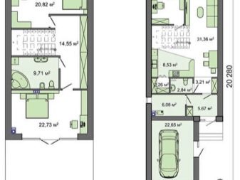 - سيكون هذا المنزل حلاً ممتازًا خصيصًا لمنطقة ضيقة.. طابقين ، مساحة معيشة تقارب 90 م 2 ، 3 غرف نوم و 2 حمام. يوجد أيضًا جراج لسيارة واحدة. تم تزيين المنزل بألوان فاتحة ، كما أن درابزين الشرفة الزجاجية يساعد المبنى على أن يبدو أكثر إشراقًا وأكثر تهوية وأخف وزناً. غرفتا نوم في الطابق الثاني ولكل منها شرفة خاصة.