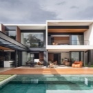 - لن يتمكن الجميع من اتخاذ قرار بشأن مثل هذا الزجاج ، لكن الشعور بالاندماج مع الطبيعة في هذا المنزل سيكون ممتلئًا. بالطبع ، إذا كان هناك جيران في الجوار ، فقد يبدو هذا المنزل الأنيق ولكن المفتوح “صريحًا” بشكل مفرط. إذا لم يكن هناك جيران في الجوار ، فلماذا لا تنظم مثل هذا الاحتفال بالفضاء والضوء. علاوة على ذلك ، غالبًا ما تتضمن مثل هذه المشاريع تقسيم مبنى سكني إلى مناطق خاصة وعامة. وحيث النوافذ ضخمة ، فهي المنطقة العامة. من الملائم أن يعيش الشخص ويعمل في المنزل الذي يستقبل أيضًا عملاء هناك – ثم ستعلنه المنطقة المفتوحة أيضًا على أنه متخصص في مكتب منزلي جميل.