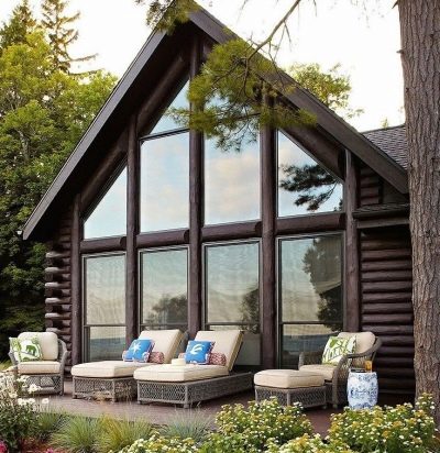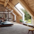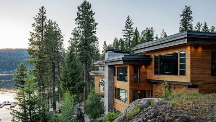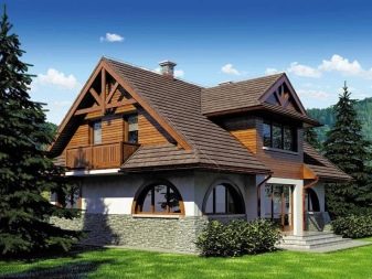 - خيار شائع جدًا يبدو جيدًا حيث توجد غابة أو غابة ، حيث لا توجد أرض قاحلة ، ولكن يوجد الكثير من الأشجار. سيكون المنظر من النوافذ مذهلاً ، ومن الجيد الاسترخاء بجوار المنزل ، والعين سعيدة. يجب أن تكون جميع الغرف الخاصة في جزء مختلف من المبنى.