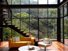 يتم بناء هذه المنازل ، معتمدين بالضرورة على الظروف المناخية للمنطقة.. يجب أن يكون مفهوما أن فقدان الحرارة حتى من خلال أحدث النوافذ ذات الزجاج المزدوج يكون دائمًا أعلى منه من خلال الجدران. نعم ، توجد أنظمة تسخين زجاجية ، لكنها باهظة الثمن. إذا كانت النوافذ تواجه الجنوب والجنوب الغربي ، على سبيل المثال ، فلن يكون فقد الحرارة كبيرًا. من المهم أيضًا أن تنسجم النوافذ البانورامية مع البيئة. إذا كانت هناك غابة أو غيرها من المناظر الطبيعية الجميلة خارج النافذة ، وحد أدنى من علامات التطور الاجتماعي ، فكل شيء على ما يرام. إذا كانت منازل الجيران قريبة ، فبدلاً من منزل به نوافذ كبيرة وجميلة ، يمكنك الحصول على هيكل حوض أسماك.