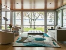 - شيوع. اتجاه عصري يتميز بهندسة صارمة وتصميم لاكوني. يتضمن التصميم نوافذ بانورامية كبيرة وغرف مدمجة وأقسام منزلقة مع إمكانية الوصول إلى الشرفة الأرضية.