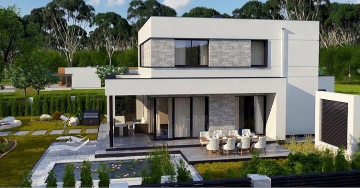 تبدو مشاريع المنازل المكونة من طابقين ذات السقف المسطح مثيرة جدًا للاهتمام.. في بلدنا ، يعد مثل هذا التصميم نادرًا ، ولكن في أوروبا يتم تقديره للغاية لفرصة الحصول على مساحة إضافية قابلة للاستخدام. تبدو مثل هذه المشاريع مثيرة للإعجاب بشكل خاص في المنازل المزينة بأسلوب التبسيط أو التكنولوجيا الفائقة. يسمح لك السقف المسطح بتجهيز منطقة ترفيهية إضافية وتزيين حديقة مزهرة وملعب رياضي. هذا الحل هو الأمثل للمنازل التي تحتوي على قطعة أرض صغيرة..