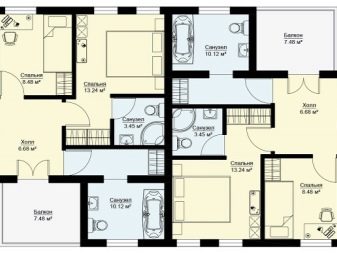 نصيحة: من المستحسن أن يوفر المشروع حمام إضافي في الطابق الثاني. هذا صحيح بشكل خاص في العائلات التي لديها عدد كبير من أفراد الأسرة. في الوقت نفسه ، يجب أن يكون موجودًا في نفس الجزء من المنزل تقريبًا كما هو الحال في الطابق الأول – سيكون من الأرخص إجراء الاتصالات بهذه الطريقة..