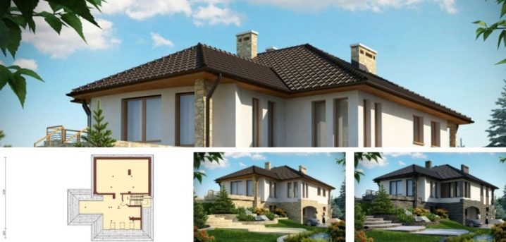 من المفيد أيضًا التفكير في خيار المسكن ذي الطابق السفلي المرتفع لعائلة واحدة.. مساحتها 180 متر مربع. م ، بينما تبلغ مساحة المعيشة 85 مترًا مربعًا. م. يتم الانتهاء من كتلة الرغوة أو الجدران الخرسانية الخلوية بالجص. الأقسام مصنوعة من قالب جبس. السقف متعدد الانحدار مزين بالبلاط البيتوميني.