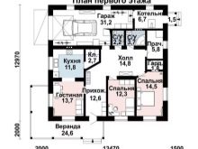 من بين الخطط الجاهزة للمباني السكنية الخاصة ، يبرز مشروع من طابق واحد وطابق سفلي وشرفة.. نظرًا للتشطيب بالطوب المواجه ، يبدو هذا الهيكل جذابًا للغاية.. في الداخل ، قاموا بتجهيز غرفتي نوم مريحة. تم تحضير قاعدة الأساس كبلاطة متجانسة. سيتم بناء الجدران الخارجية من الخرسانة الخلوية مع عزل الصوف المعدني (حل تقني تم اختباره بمرور الوقت ولا يحتوي على “عيوب”) ؛ يتم استخدام كتلة الخرسانة الخلوية كقواطع ، وستكون العوارض الخشبية هي الأرضيات.