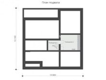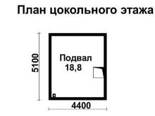 مساحة القبو 27.15 متر مربع. تبلغ مساحة قسم المعيشة وتناول الطعام حوالي 40 مترًا مربعًا. م عند مدخل المنزل هناك شرفة بطول 4 أمتار. أيضا في المبنى: