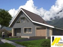 يمكنك أيضًا اختيار منزل بسيط من الخرسانة (أو بالأحرى ، من الخرسانة الخلوية). يكتمل أحد هذه الخيارات بمرآب بمساحة 31 مترًا مربعًا. م. يبلغ ارتفاع الطابق العلوي 2.8 متر ، ويبلغ ارتفاع مستوى القبو 1.8 متر ، وتحت السقف المنحدر توجد غرفة مرجل و 3 غرف معيشة.