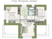 يتضمن أحد الحلول الممكنة إنشاء غرفة غسيل في الطابق السفلي.. بالإضافة إلى ذلك ، سيتم تجهيز غرفة مرجل وحفرة هناك. كما أنها تخصص مساحة تبلغ حوالي 30 مترًا مربعًا ، والتي يمكنك استخدامها وفقًا لتقديرك الخاص. يوجد شرفة مجاورة للطابق الأول من المنزل. تم إنجاز كل شيء على محمل الجد – فقد وفروا غرفة معيشة بطول 17 مترًا وقاعة وحتى إضاءة ثانية. الطابق الثاني مخصص لغرف النوم والحمام.