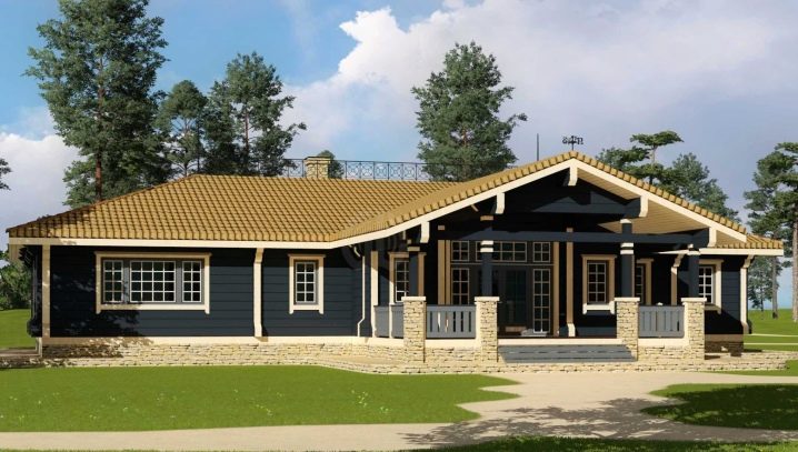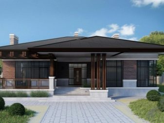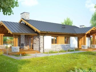 ومما يثير الاهتمام أيضًا المشاريع التي توجد بها تراسات على جانبي المنزل.. شرفة واحدة تطل على الفناء الرئيسي ، والثانية – في الخلف. سيبدو السقف غير المنتظم رائعًا. غالبًا ما يكون هناك عدد قليل من النوافذ في مثل هذه المنازل ، ولكن إذا كان هناك عدد قليل من الغرف في مبنى من طابق واحد ، ولكن التصميم يتضمن تراسين مشرقين ، فهذا خيار جيد جاهز..
