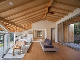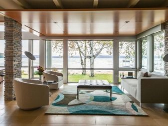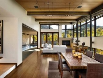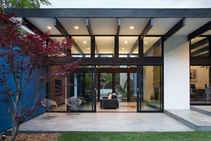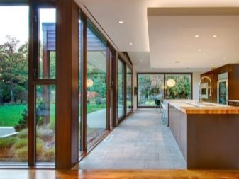 بالإضافة إلى ذلك ، من المرجح أن يكون للمنزل الكبير المكون من طابق واحد عدة أبواب تؤدي إلى شرفة (تطل على الحديقة). يمكنك أيضًا إنشاء نوافذ بانورامية ، غالبًا في غرفة المعيشة..
