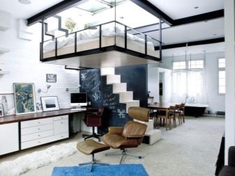يتم لعب خيارات غرف النوم المعلقة بطريقة مثيرة للاهتمام. الطابق الثاني مصنوع بشكل تقليدي – في الواقع ، مجرد مستوى حيث يتم إخراج السرير. بشكل تقريبي ، يمكن أن يكون فوق الخزانة ، فوق منطقة العمل. والآن سوف تحتاج إلى سلم. سيكون هناك ضوء خاص به ، وإعداداته الخاصة ، بحيث لا يتدخل الشخص الذي يجلس ، على سبيل المثال ، مع جهاز كمبيوتر محمول أسفل السرير ، مع الشخص النائم. في منزل كبير ، قد لا تكون هناك حاجة لتنظيم مثل هذه المناطق ، ولكن جميع أنواع الطلبات ممكنة ، خاصة تلك الشائعة جدًا الآن.