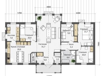أخيرًا ، حول الشؤون المالية. غالبًا ما يكون المنزل المكون من طابق واحد مع عائلة كبيرة أرخص ، وإن لم يكن بالضرورة. إذا كانت ضخمة جدًا ، فلن تنجح في توفير المال نظرًا لعدد الطوابق – فإن الأساس والسقف سيسحبان كثيرًا. الاستنتاج هو: مع ذلك ، غالبًا ما تصبح المنازل الكبيرة المكونة من طابق واحد حلاً ليس حلاً عمليًا بقدر ما يرتبط بالأفكار الجمالية وحتى النفسية والعاطفية للعملاء حول المسكن. وهذا هو الشيء الرئيسي تقريبًا.