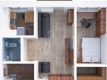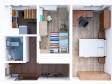 - غرف في “مصغرة محسنة” كلها منفصلة ، والحمام غير متصل بالحمام. ولكن حتى هذا الإصدار من الشقة يتطلب التحسين. المطبخ بمساحة 5 أمتار مربعة بعيد عن الراحة. يمكنك محاولة تفكيك المخزن وتحريك الحمام وإضافة بضعة أمتار مطلوبة إلى المطبخ ؛