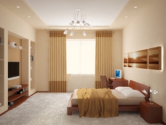 يتم اختيار تركيبات الإضاءة في مرحلة التصميم وتشمل ثريا وبعض المصابيح بجانب السرير. يمكن أن يكون كل من الشمعدانات ومصابيح الطاولة العادية. الحل الجيد في غرفة الضيوف هو نثر الأضواء الصغيرة التي توفر القدرة على التحكم في شدة الضوء..
