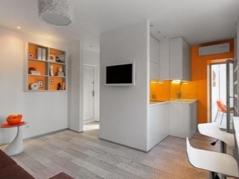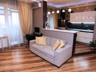 بغض النظر عن نوع الشقة التي لديك – غرفة واحدة أو غرفتين أو حتى ثلاث غرف ، يمكنك استخدام المساحة الرئيسية لغرفة المعيشة جنبًا إلى جنب مع المطبخ. إذا كانت هناك غرف مجانية أخرى ، فسيتم حجزها لغرف النوم..