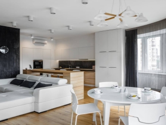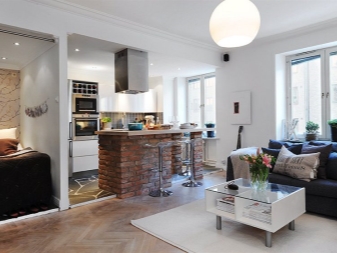 ولكن هناك أيضًا عيوب معينة لشقة بهذا التصميم. بادئ ذي بدء ، تجدر الإشارة إلى أن غرفة من هذا النوع لا يمكن أن تشوش بأثاث غير ضروري ، خاصةً إذا كانت صغيرة بما يكفي. قبل أن تبدأ في ترتيب شقة ، تحتاج إلى تخطيط المساحة بعناية..