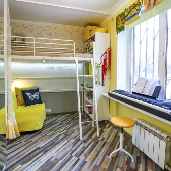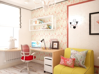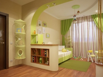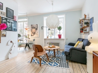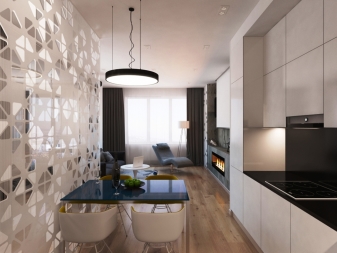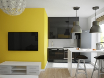 يمكنك أيضًا تجربة مجموعة من الاتجاهات الأسلوبية المختلفة. على سبيل المثال ، قم بتزيين المساحة المنفصلة لمساحة العمل بأسلوب كلاسيكي ، ومساحة المطبخ وغرفة المعيشة بأسلوب حديث. يمكنك أيضًا استخدام ألوان مختلفة – لمنطقة الجلوس ، والألوان الفاتحة ، على سبيل المثال ، الباستيل ، ومساحة اللعب – لهجات مشرقة..