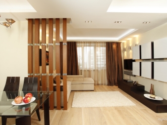 يجب تقسيم المنطقة التي تزيد مساحتها عن 30 مترًا مربعًا إلى عدة مناطق بصريًا ، بحيث تشعر بالراحة في العيش في مثل هذه الشقة ولا ترى باستمرار نفس الصورة أمامك.