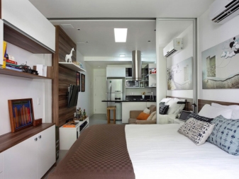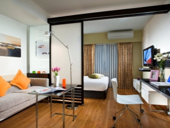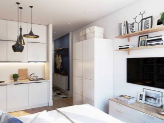 شقق الاستوديو لها مزاياها وعيوبها. تشمل المزايا بشكل أساسي حقيقة أنه حتى في غرفة صغيرة يمكنك تجربة حلول التصميم الأصلية..