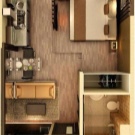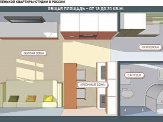 يجب التفكير بشكل مثالي في تصميم الاستوديو الصغير الذي تبلغ مساحته 21 أو 22 أو 23 مترًا. قم بتمييز المناطق التي تحتاجها بشدة ورتبها بالطريقة الصحيحة. وبالتالي, إذا كان لديك 18 أو 19 مترًا مربعًا فقط تحت تصرفك ، فسيكون ذلك كافيًا لك فقط لتجهيز غرفة المعيشة والمطبخ. في هذه الحالة ، يكون المطبخ هو الأفضل بالقرب من النافذة ومنطقة المعيشة – على الجانب الآخر من الشقة. هذا المخطط مناسب للغاية. قد لا تكون الأقسام في هذه الشقة الصغيرة موجودة على الإطلاق.